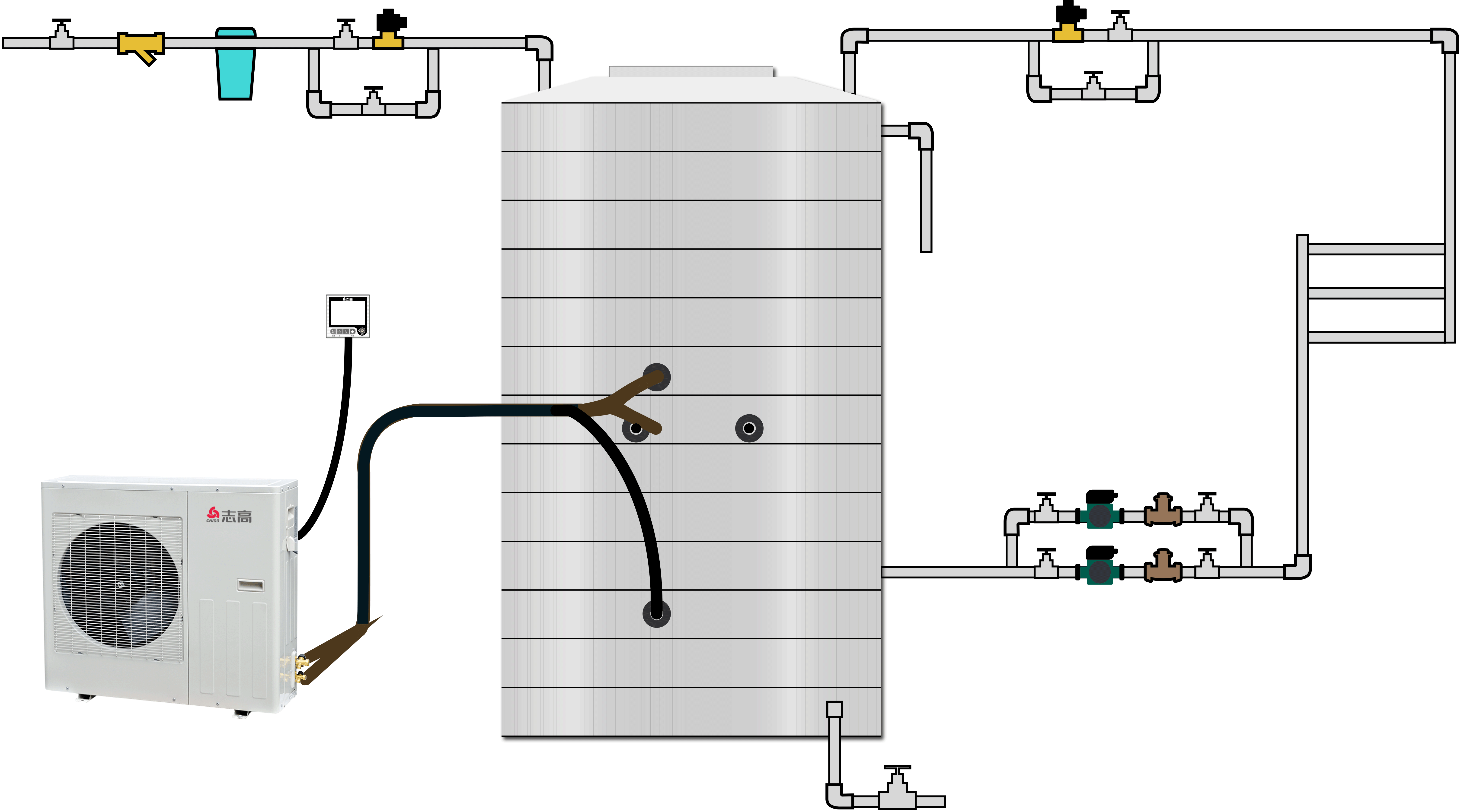 • 1、主機與水箱用銅管連接,安裝簡便